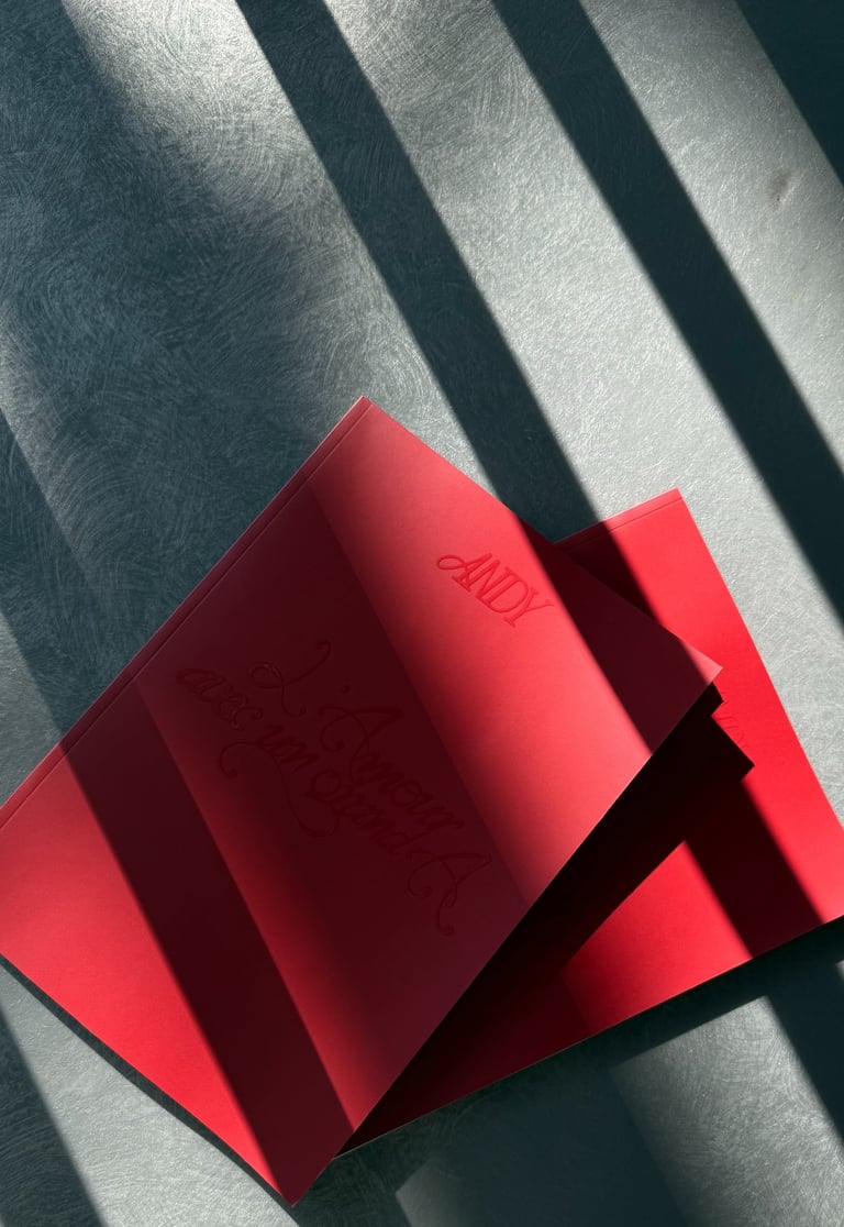 Cette première édition met à l’honneur l’amour, ce sentiment universel exploré sous toutes ses formes et à travers diverses interprétations. C’est autour de cette thématique qu’ANDY prend vie. Pour l’occasion, un travail typographique soigné a été réalisé, porté par un rouge profond, symbole de passion et d’intensité.
